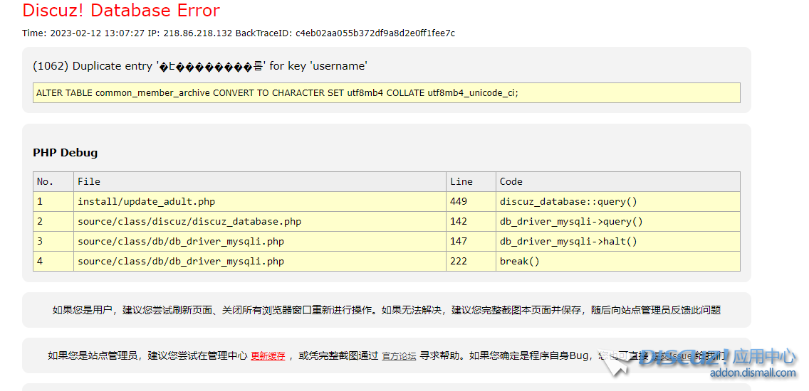 Q009:升級(jí)過程中提示(1062) Duplicate entry '***' for key 'username'ALTER TABLE common_member CONVE ...