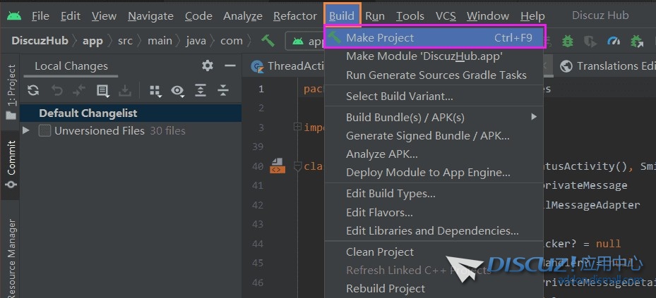 構(gòu)建應(yīng)用和正常的Android程序一樣,首先你需要使用gradle構(gòu)建一下整個(gè)項(xiàng)目。在導(dǎo)航欄中選擇Build->Make Project完成項(xiàng)目的構(gòu)建。