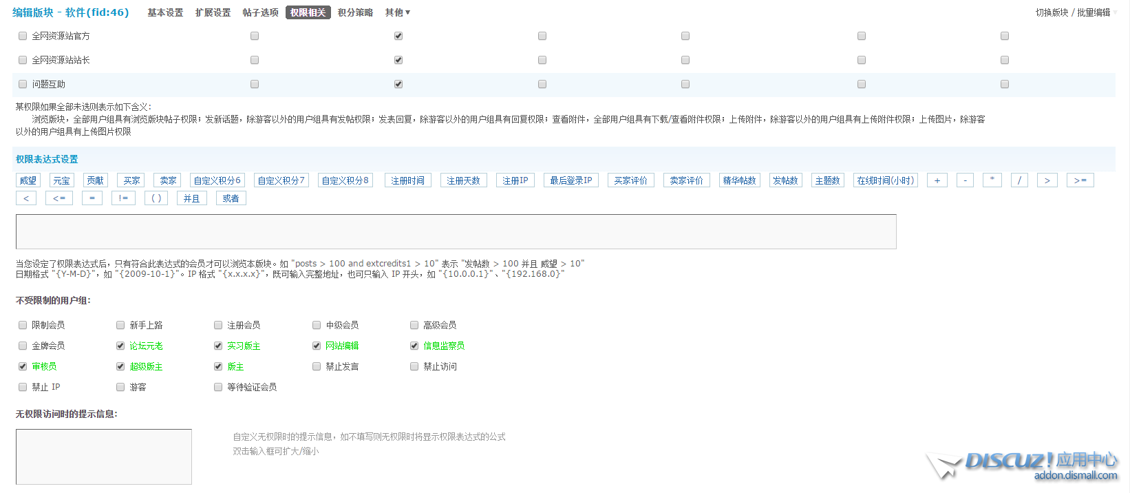 論壇板塊設(shè)置會員只能回復(fù)不能發(fā)帖為什么不行,我是這樣設(shè)置的,大佬們幫忙看一下是設(shè)置錯(cuò)誤了嗎?