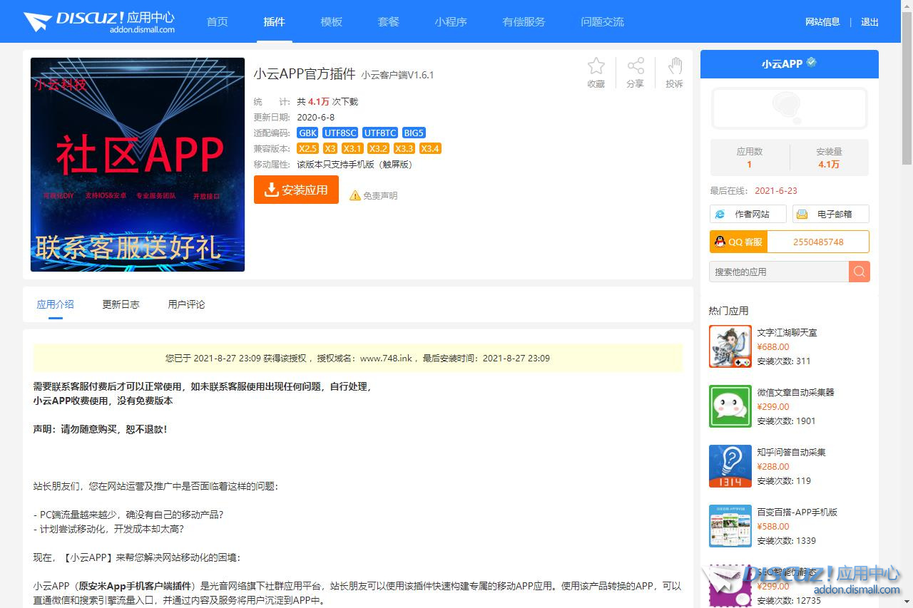不是很懂,小云插件頁面上不是說它是收費插件么?