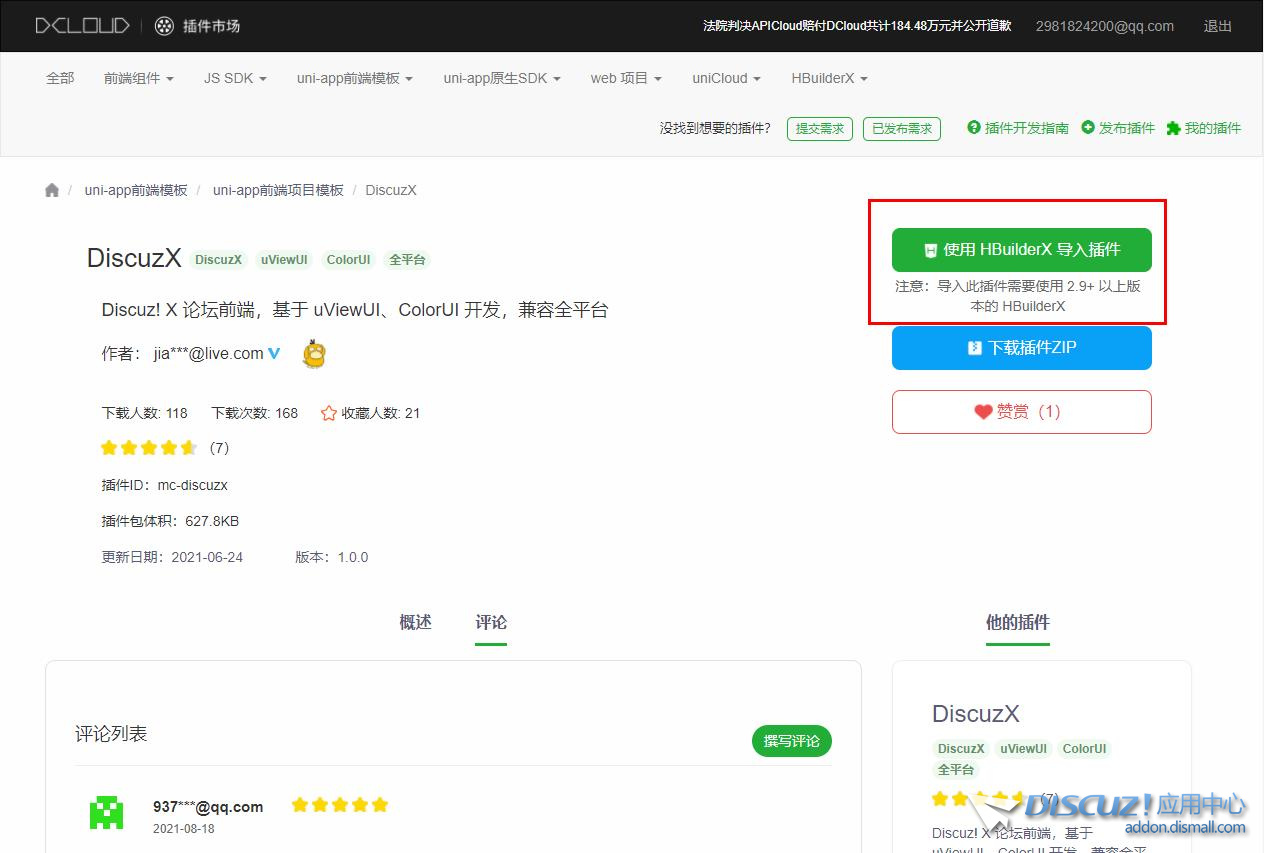 | 首先打開https://dcloud.io/下載HBuilderX。 應用中心搜索小云APP安裝。https://addon.dismall.com/plugins/appbyme_app.html 打開https://ext.dcloud.net.cn/plugin?id=5450#rating 導入插件。 mobcent2020_05_20.zip 下載附件解壓到論壇根目錄,