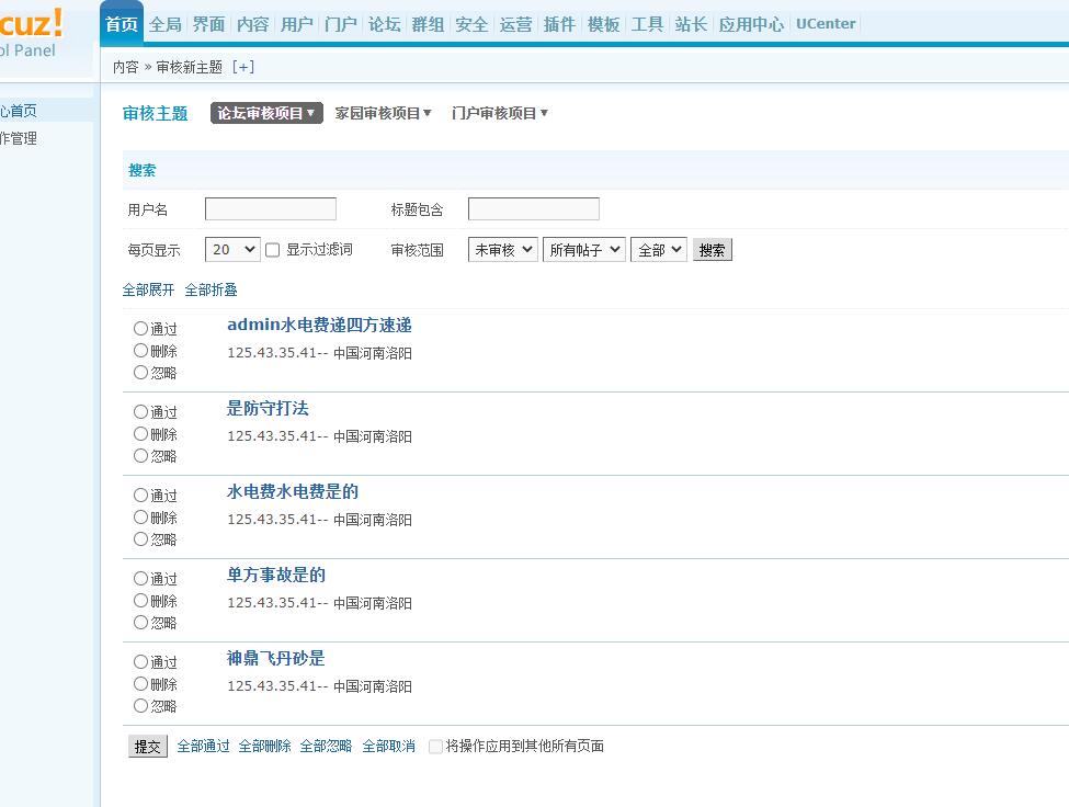 只要設(shè)置 關(guān)鍵詞替換, 內(nèi)容重新審核 就會(huì)把 帖子 所有帖子 全部 變成 等待審核的主題數(shù)
