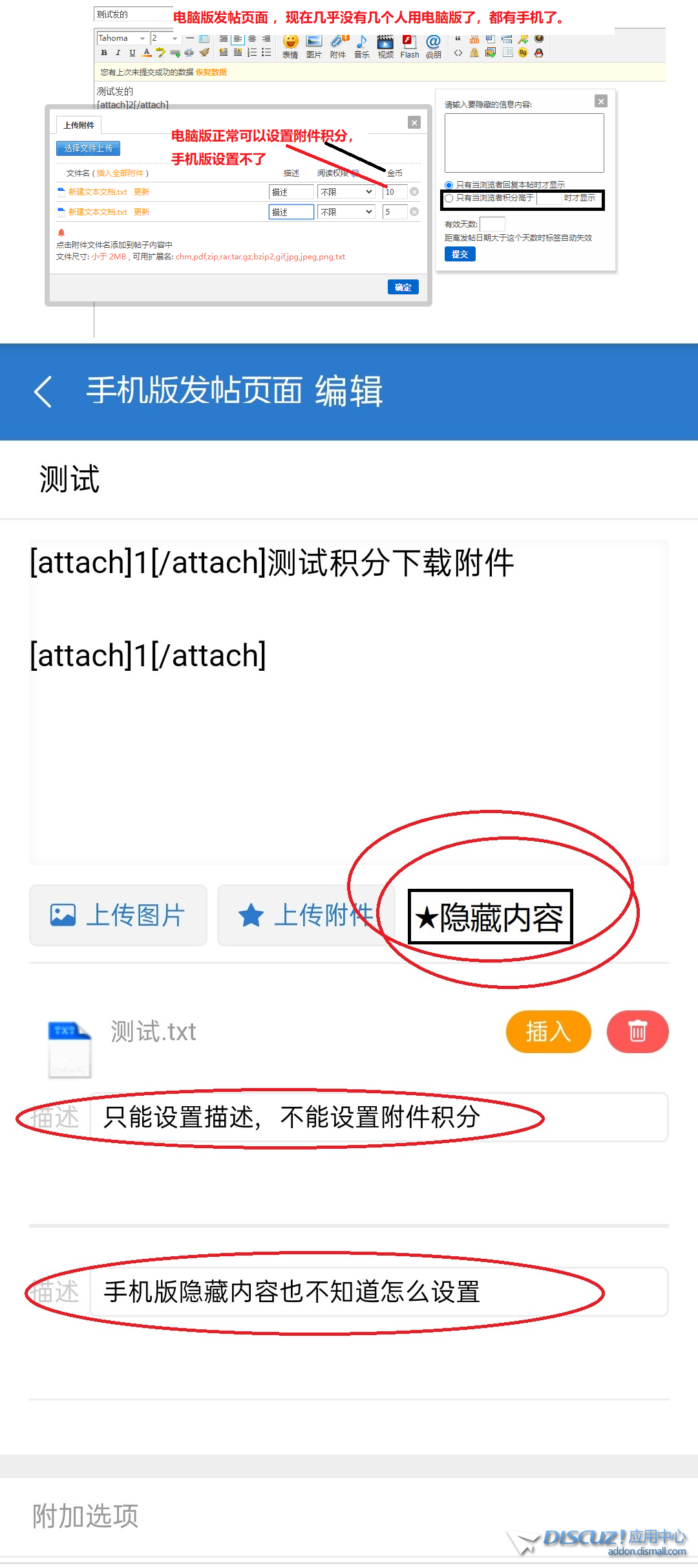 [已處理] discuz3.5的bug附件上傳手機版不能設(shè)置附件積分下載,電腦版可以設(shè)置。 |