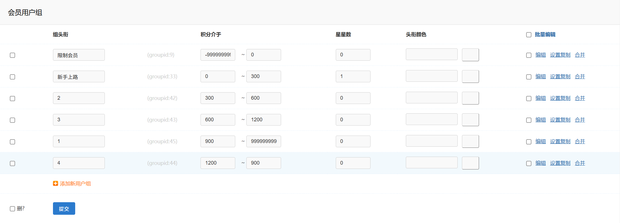 [求助] 會(huì)員用戶組新增類型,積分介于怎么搞搞,總是錯(cuò)亂,有沒(méi)有更快更便捷的辦法 |