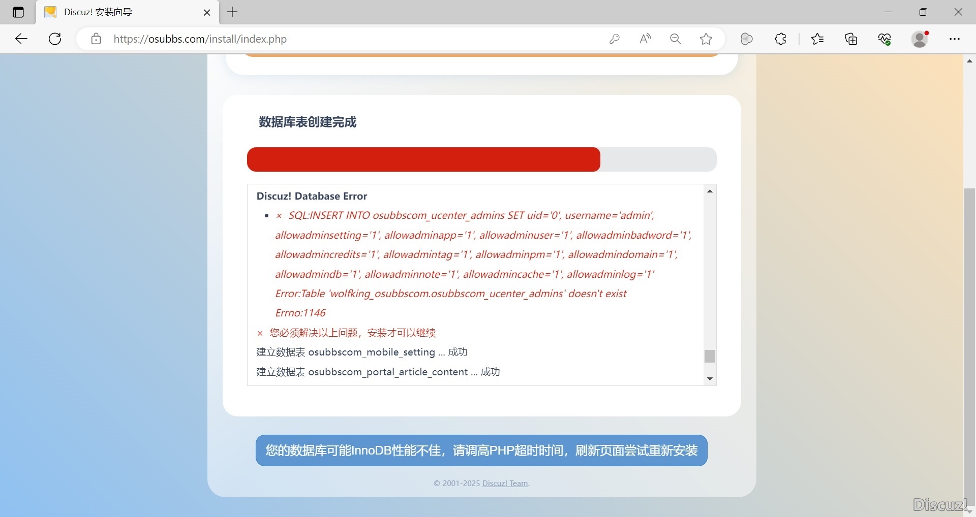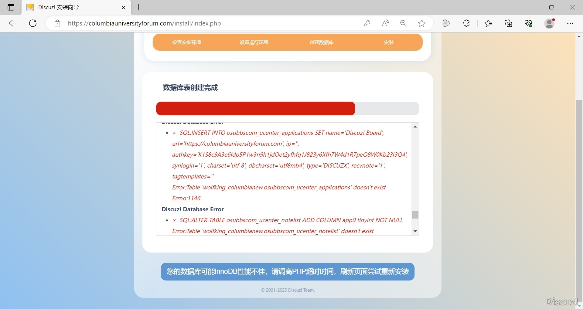 [求助] 從X3.2升級到X3.5貌似成功了,但是現(xiàn)在要網(wǎng)站搬家,安裝X3.5時(shí)會報(bào)錯(cuò) |