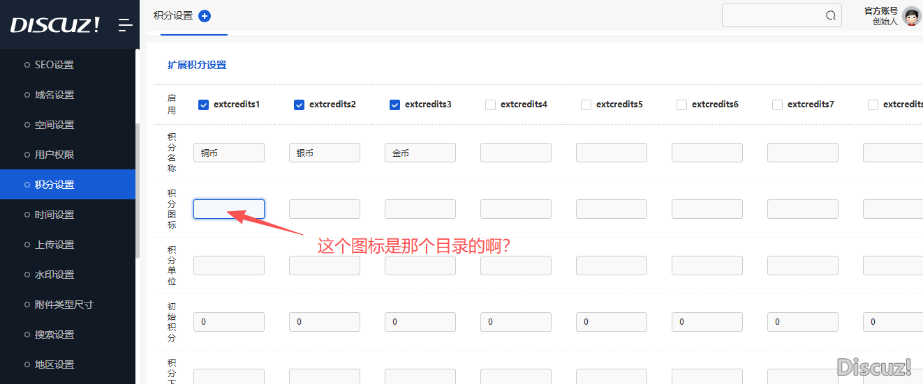 [求助] 后臺的積分設(shè)置,里面的積分圖標(biāo),是在哪個目錄啊。?? |