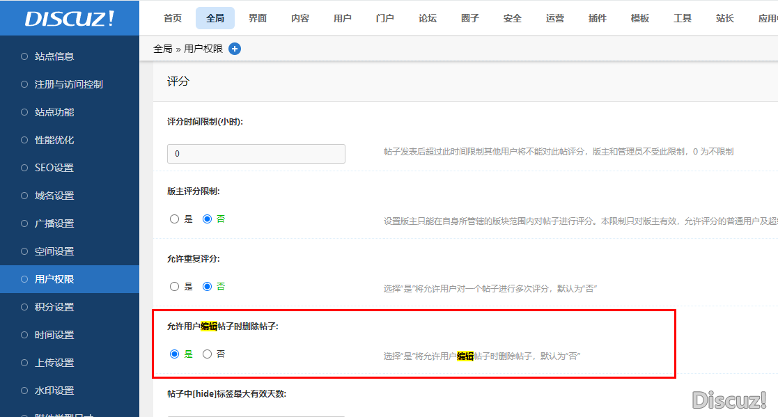 [求助] 以前關(guān)閉了用戶刪除自己帖子的權(quán)限,想恢復(fù),不知道怎么恢復(fù)了 |