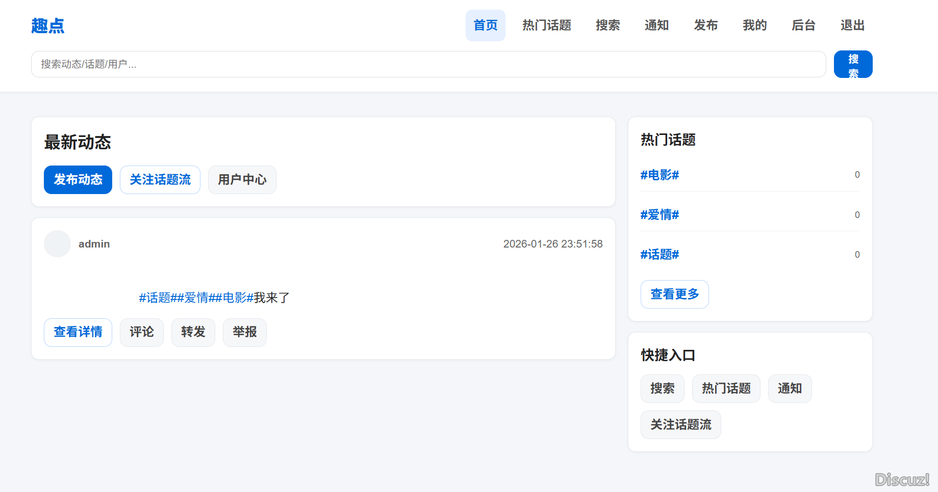 discuzQ很好的產(chǎn)品,可惜不維護(hù)了,自己搞了一個(gè)看看還缺什么 |