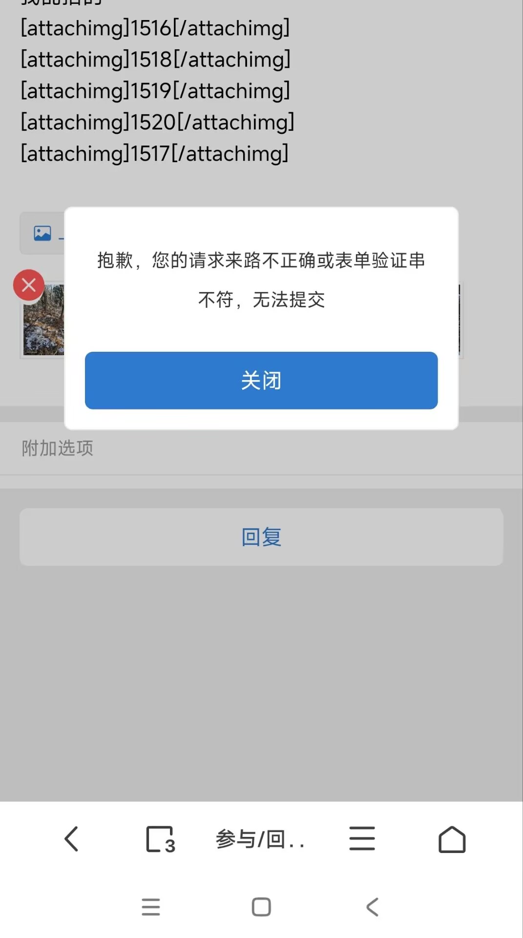 [新問題] 發(fā)多幾個圖片就提示:抱歉,您的請求來路不正確或表單驗證串不符,無法提交 |