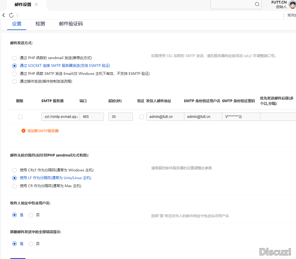 [已解決] 求Discuz x5.0郵箱設置 |