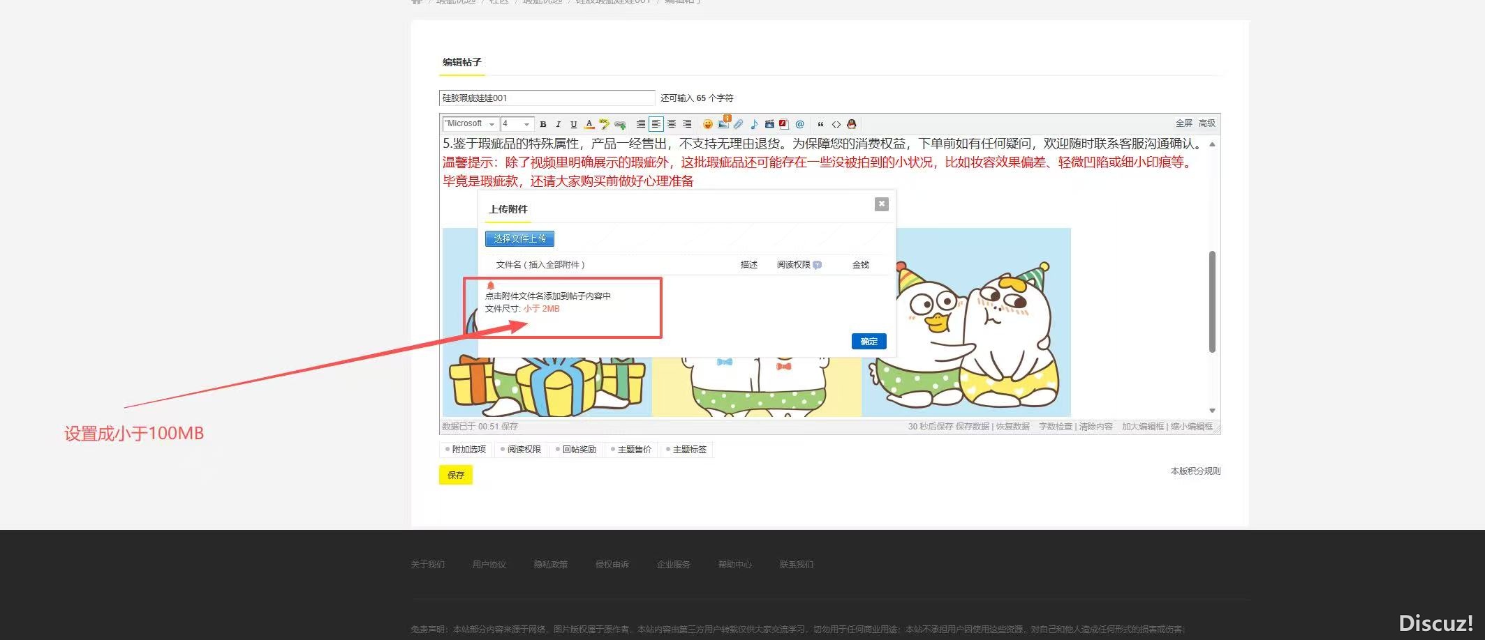 [求助] 我現(xiàn)在的發(fā)帖附件是小于2MB的,怎么改成第二張圖片這種可以上傳小于100MB |