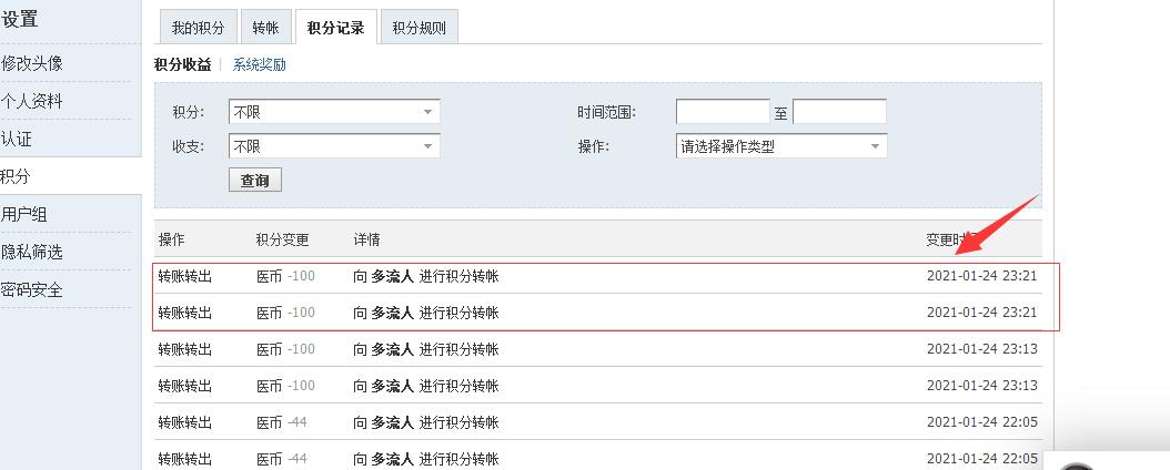 [已處理] 積分轉(zhuǎn)賬會重復(fù)扣積分 |